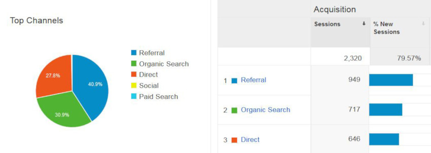 2.Referral(推荐流量):访客可以从其他网站引导进站,可以分为两种情况。首先,将链接放在他们的粉丝页面上,视频号频道,然后别人认为你的产品或内容很好,主动在部落或Facebok上推荐。所以你可以通过推荐流量来了解你的网站,以及你是否在网络和社区中有音量或讨论。