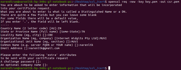 Openssl{新CSR登录请求}-key{我们刚刚生成}{keyname}-out{导出证书签名请求}name{namewith.pemextension}